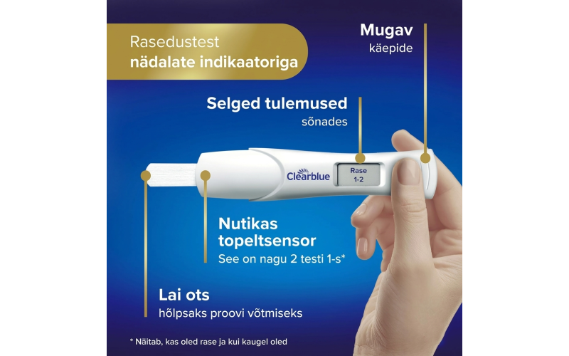 Один цифровой тест на беременность Clearblue с индикатором недель - очень точный - также сообщает вам, на каком сроке вы находитесь (1-2, 2-3, 3+ недели с момента зачатия). Цифровой тест на беременность Clearblue с индикатором недель - это первый и единственный тест, который так же точен, как ультразвуковое сканирование при определении срока беременности. Его Smart Dual Sensor ™ не только сообщает вам словами, «беременны» вы или «не беременны», но и сообщает вам, на каком сроке вы находитесь. Вы можете провести тест за 4 дня до предполагаемых месячных.